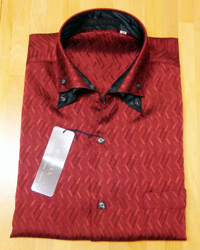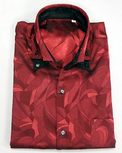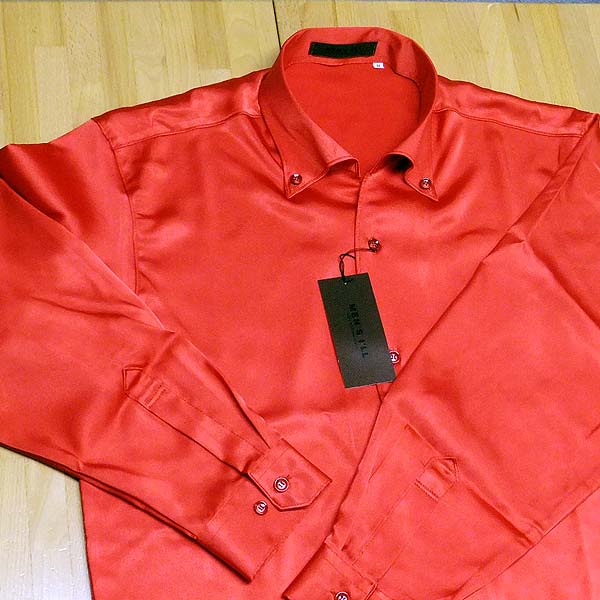 真紅に輝くサテンシャツ サテン生地オープンシャツ サイズ:M・L・LL