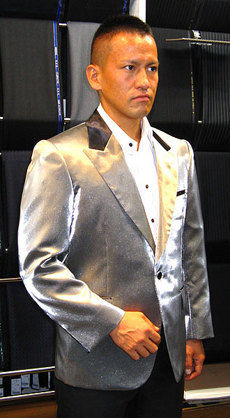 フォーマル仕様仕上げ きらきらと輝くシルバーのラメ柄のステージ衣装です。 プロ仕様のステージジャケットです