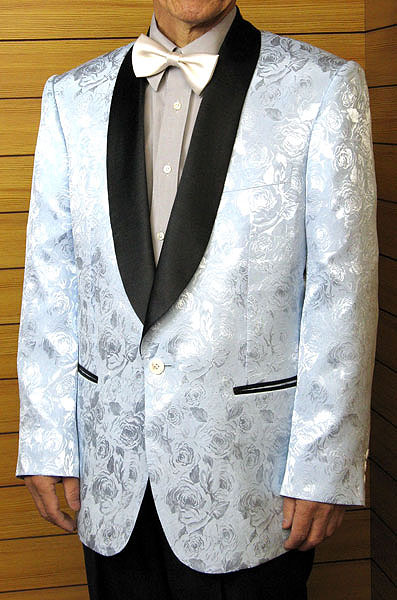 フォーマル仕様仕上げ 薔薇ジャガードのJ-白生地で、衿とポケットに黒のショールでアクセントをプラスしました