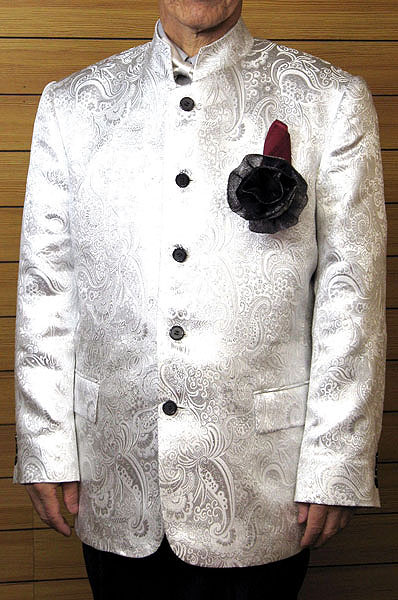 エンペラー生地でゴージャスで真っ白なマオカラージャケットです。Vシネに登場する?